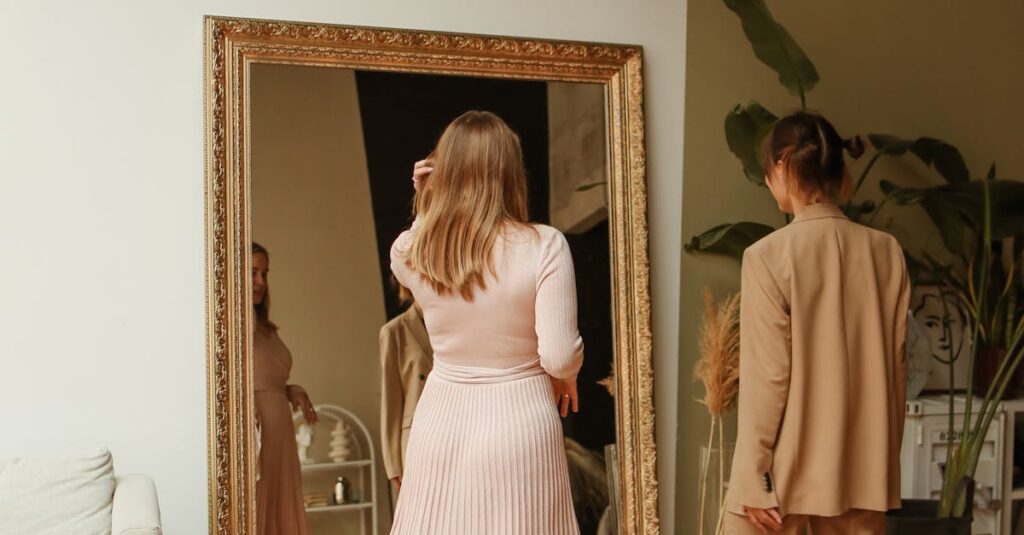 Person browsing clothing items on a smartphone, showcasing modern online shopping experience.